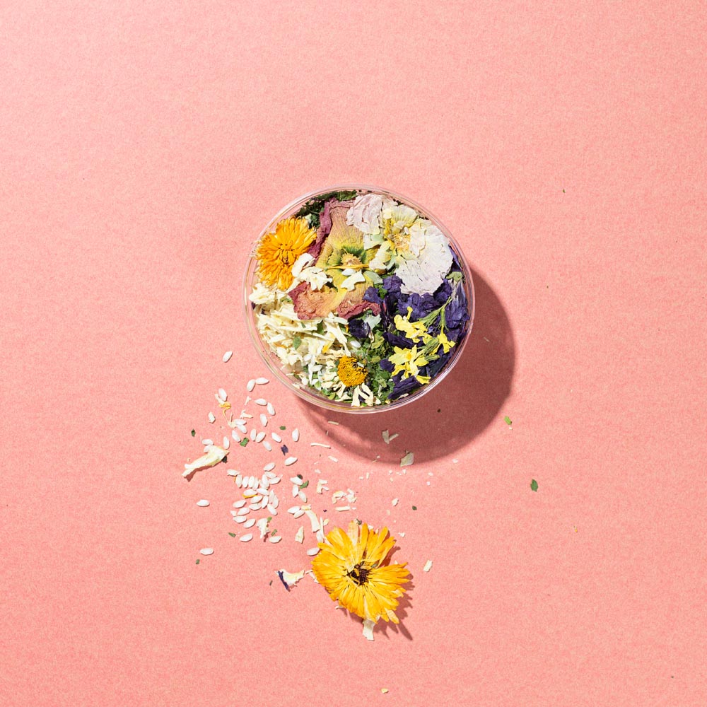 Carnaroli-Reis, Mangold, Spinat, Basilikum, Peterskraut, Oregano, Rosmarin, Majoran, Petersilie, Schnittlauch, Margherita, Rosen-Malve, Zwiebeln, Brennnessel, SELLERIE, getrocknet in unterschiedlichen Anteilen.